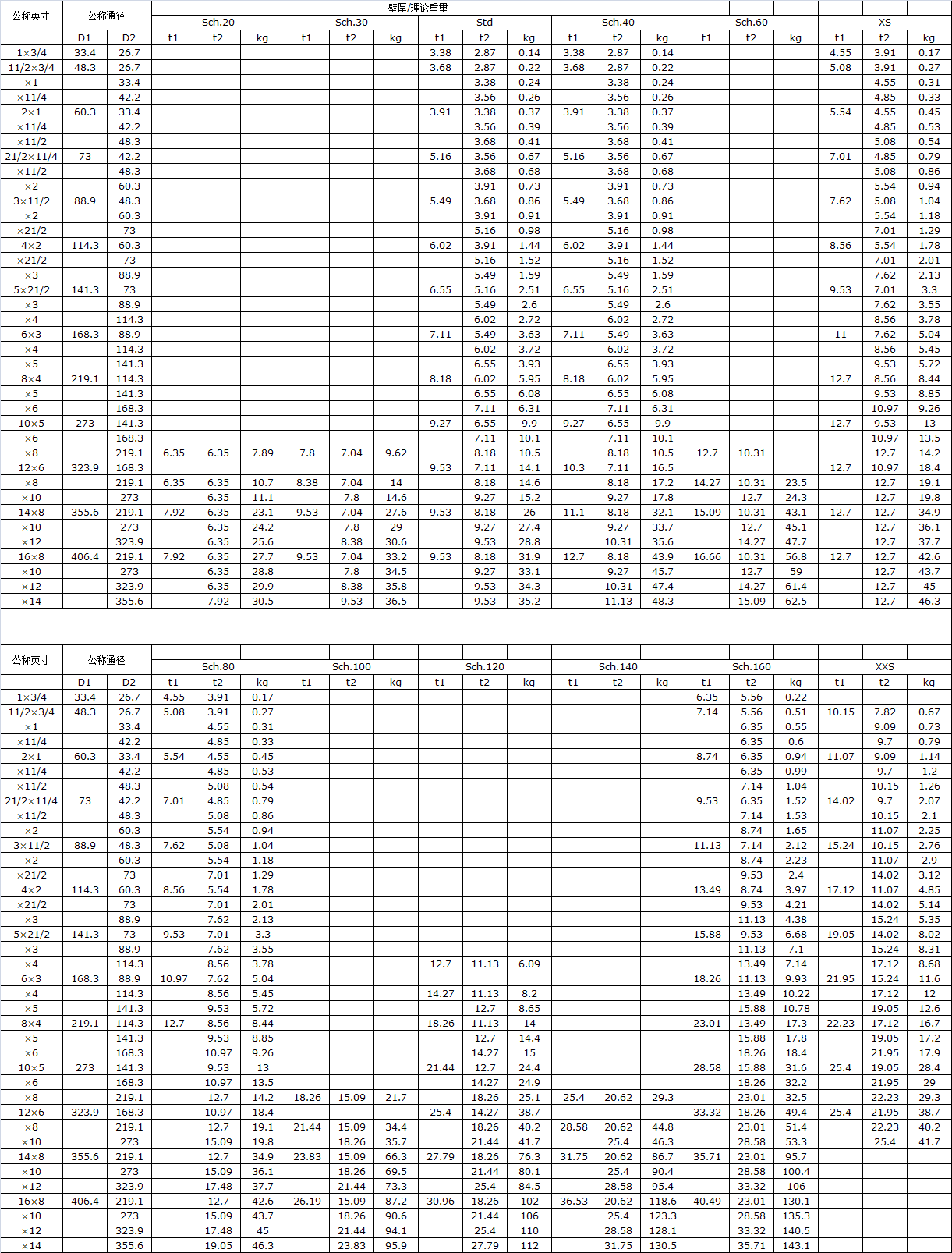 美標異徑管重量理論表_CONCENTRIC樱花AV一区二区廠家標注