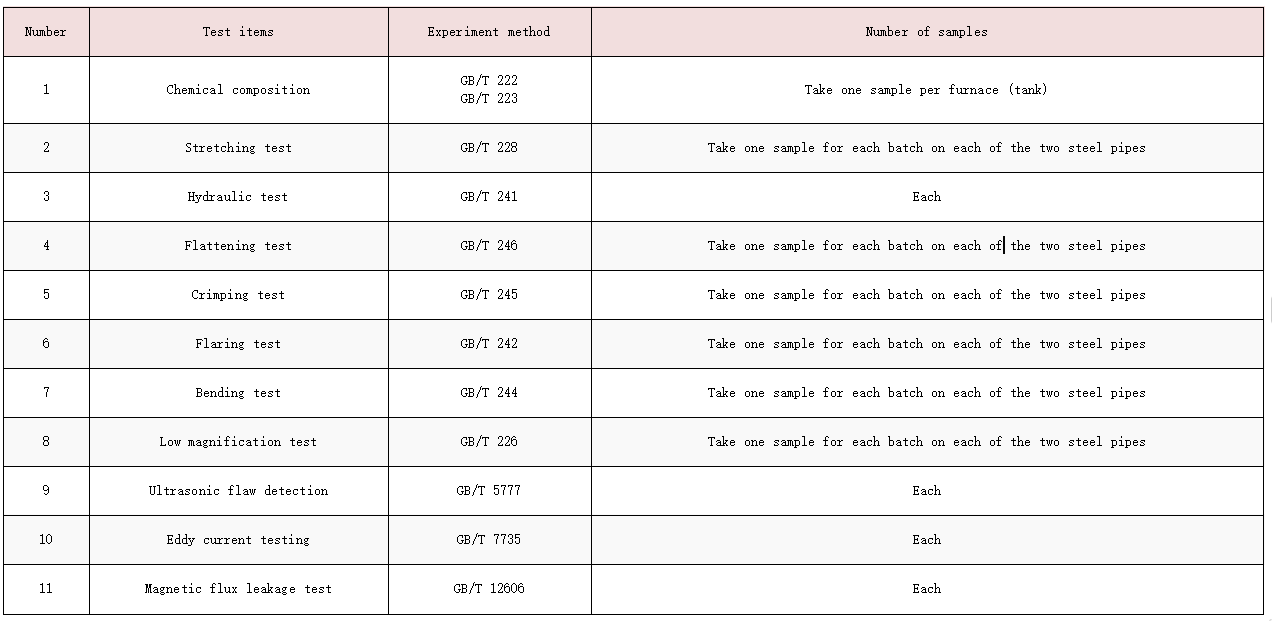 The steel pipes are inspected and accepted in batches. Each batch shall consist of steel pipes of the same grade, the same furnace (tank) number, the same specification and the same heat treatment system (heating).