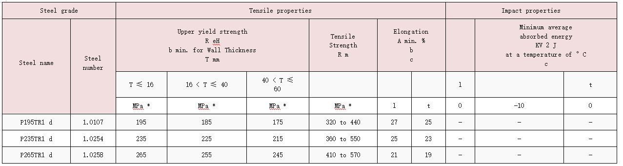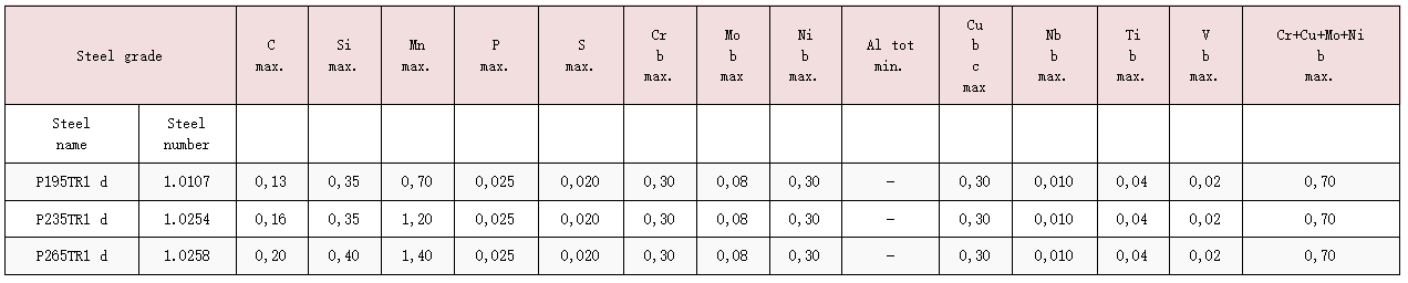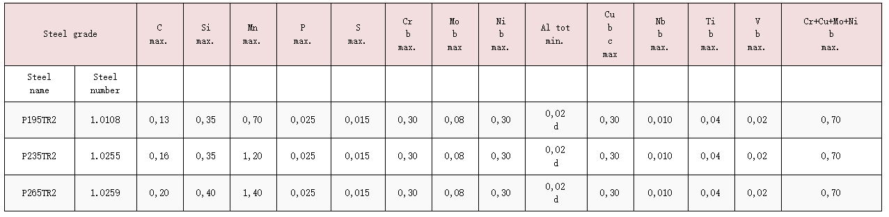 EN 10216是一個標準,涵蓋了P235TR2級鋼,非常適合壓力應用。此外,歐洲標準EN 10216-1規定了兩種質量鋼的技術交付條件,即EN 10216-1 p235tr1TR2。