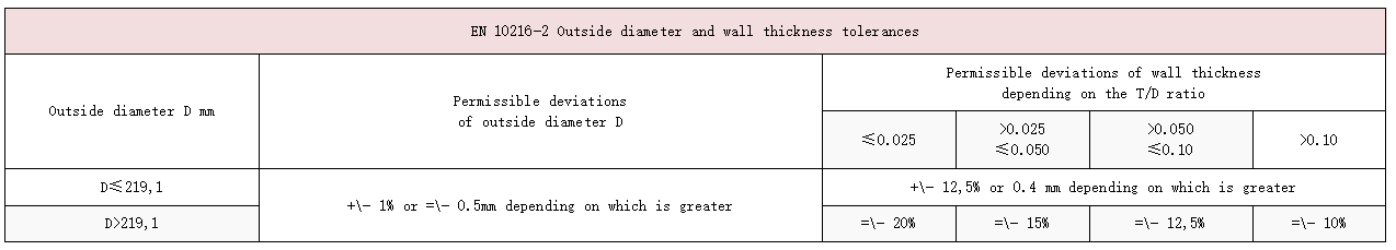 Dimension for EN10216-2 Steel pipe  EN10216-2鋼管尺寸