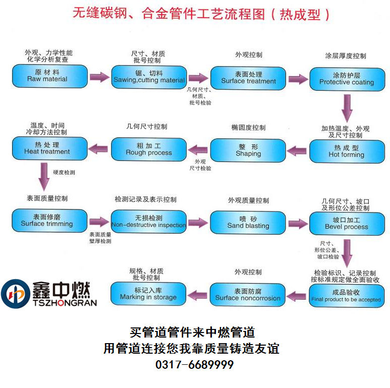 無縫碳鋼、合金鋼管件管件(熱成型)樱花AV一区二区工藝簡易流程圖