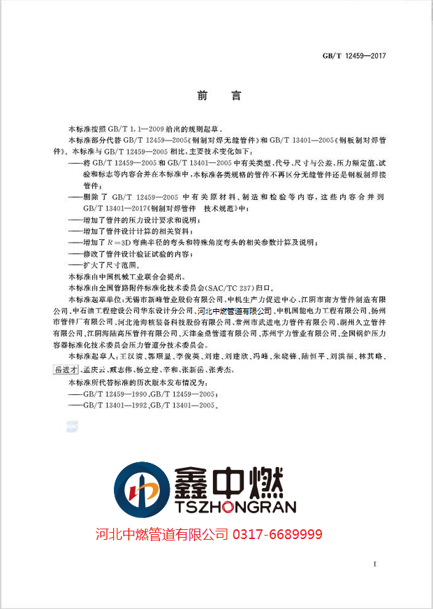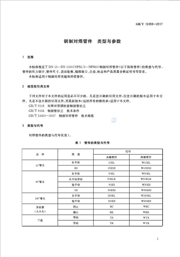 GB/T12459-2017鋼製對焊管件 類型與參數