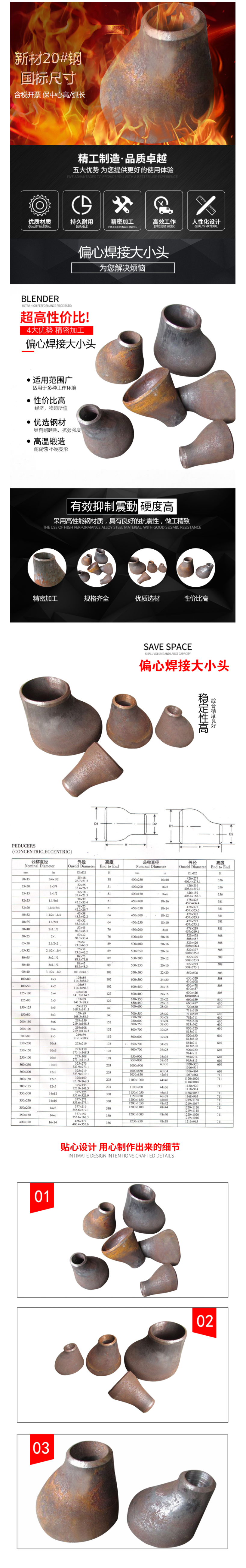 偏心異徑管(偏心大小頭),材質為:ASTM A234 GR. WPB,標準為:NSI B16.9
