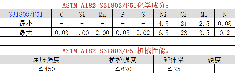 ASTM A182/A182M F51化學及機械性能分析: