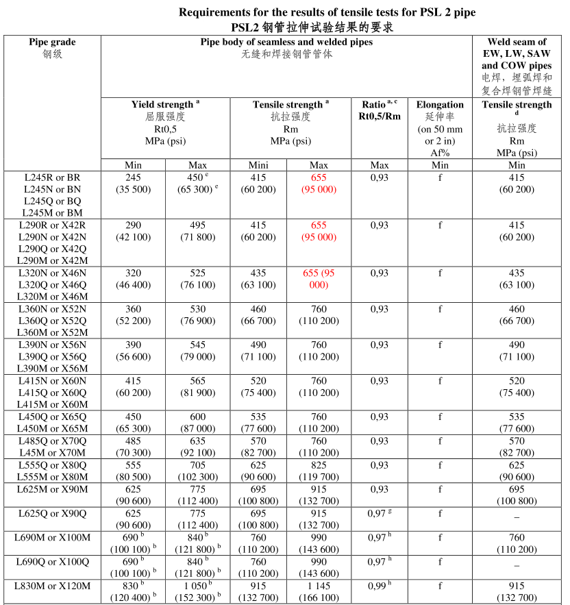 國際標準: ISO 3183-2012,NACE MR0175/SO 15156
